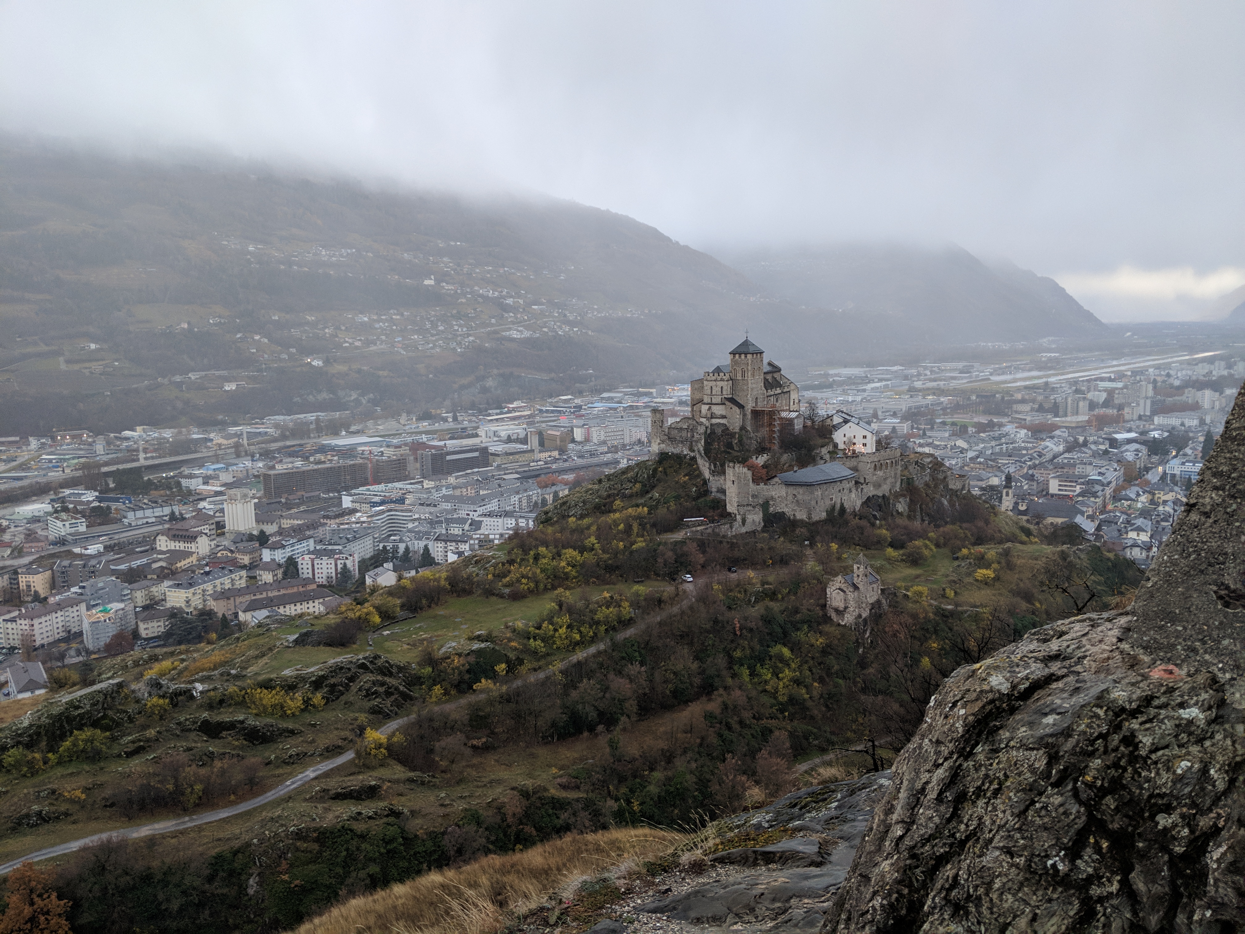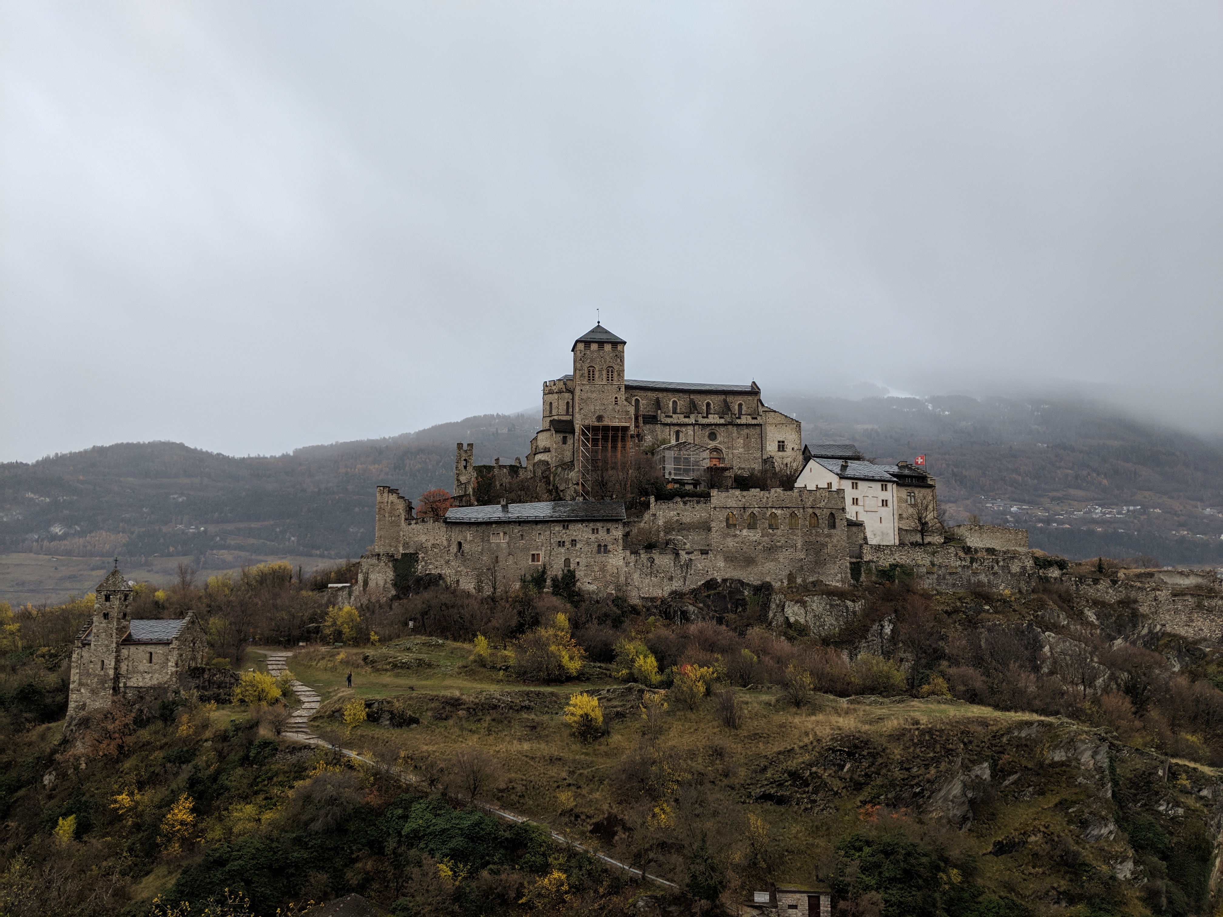 One hosts the Tourbillon Castle, the other Valère Basilica, and these dramatic sounding names were a perfect metaphor for discovering the twin peaks under the rain and the mist.