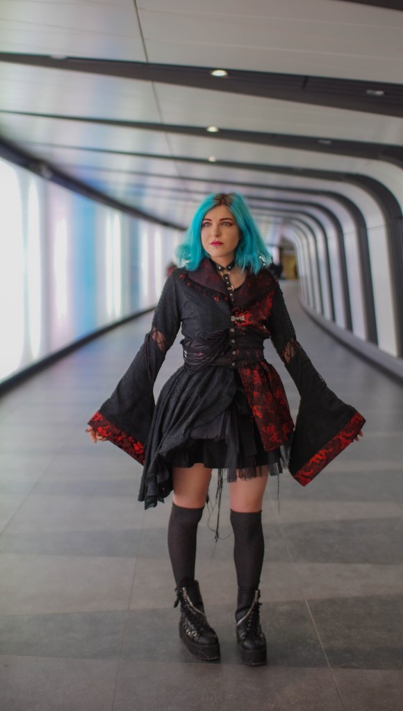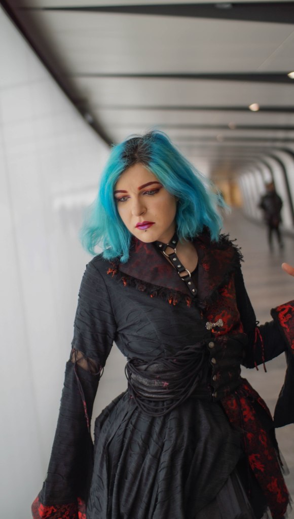 Oh, why is this tunnel so different than it had looked from outside? So much brighter, I’m not sure if it is comforting, though. And… my outfit… is different. I wasn’t wearing this black and dark red kimono dress before. What sort of trick is it? Was I drugged for a while when I stepped in, and brought here by a psychopathic pervert? Would they force me to stay in this tunnel?